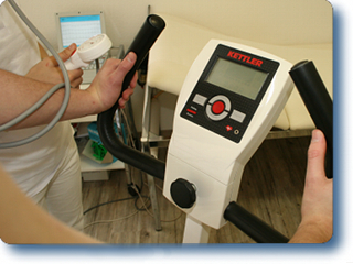 Unter dem Begriff Ergometrie fasst die Medizin verschiedene Methoden zusammen, um körperliche Leistungen genau vorzugeben, unter gleichen Bedingungen zu wiederholen und die Resultate objektiv einzuschätzen. Sie gibt Auskunft über eventuelle Herzkrankheiten, wie z.B. die Angina pectoris oder Durchblutungsstörungen der Herzkranzgefäße. Durchgeführt wird sie auf einem Fahrradergometer unter fortlaufender Registrierung Ihres EKGs.